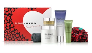 Famed skincare brand Elemis has partnered with gorgeous fashion brand Rixo for a heavily discounted skincare box. The collection — which is worth £121 — provides everything you need for a good skincare routine, including the Pro-Collagen Cleansing Balm, Peptide4 Thousand Flower Mask, Superfood Day Cream, and Dynamic Resurfacing Facial Pads. A gentle cleansing cloth and Rixo heart-printed scrunchie top everything off.